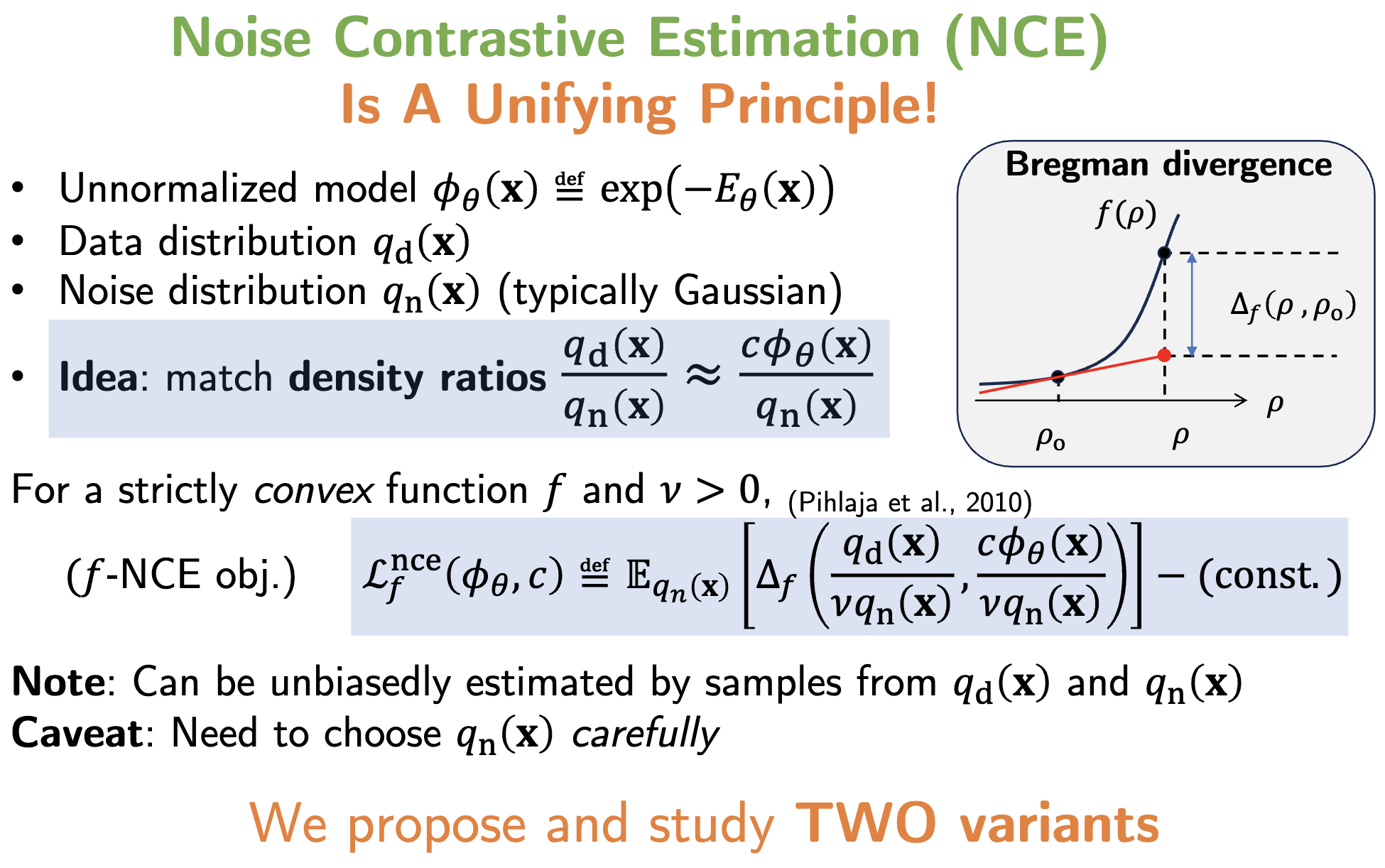 Energy-based models are expressive and broadly used in generative modeling, causal inference, and computational physics, but are difficult to train due to the unknown partition function. In [2], we provide a unified analysis of many existing estimators through noise contrastive estimation within a Bregman divergence framework. This perspective clarifies connections among methods, provides statistical consistency guarantees, and identifies common failure modes.